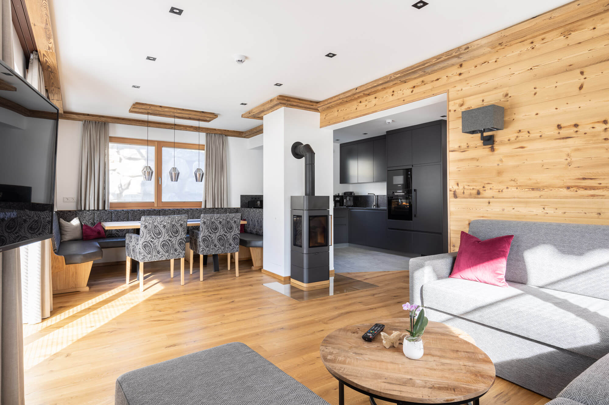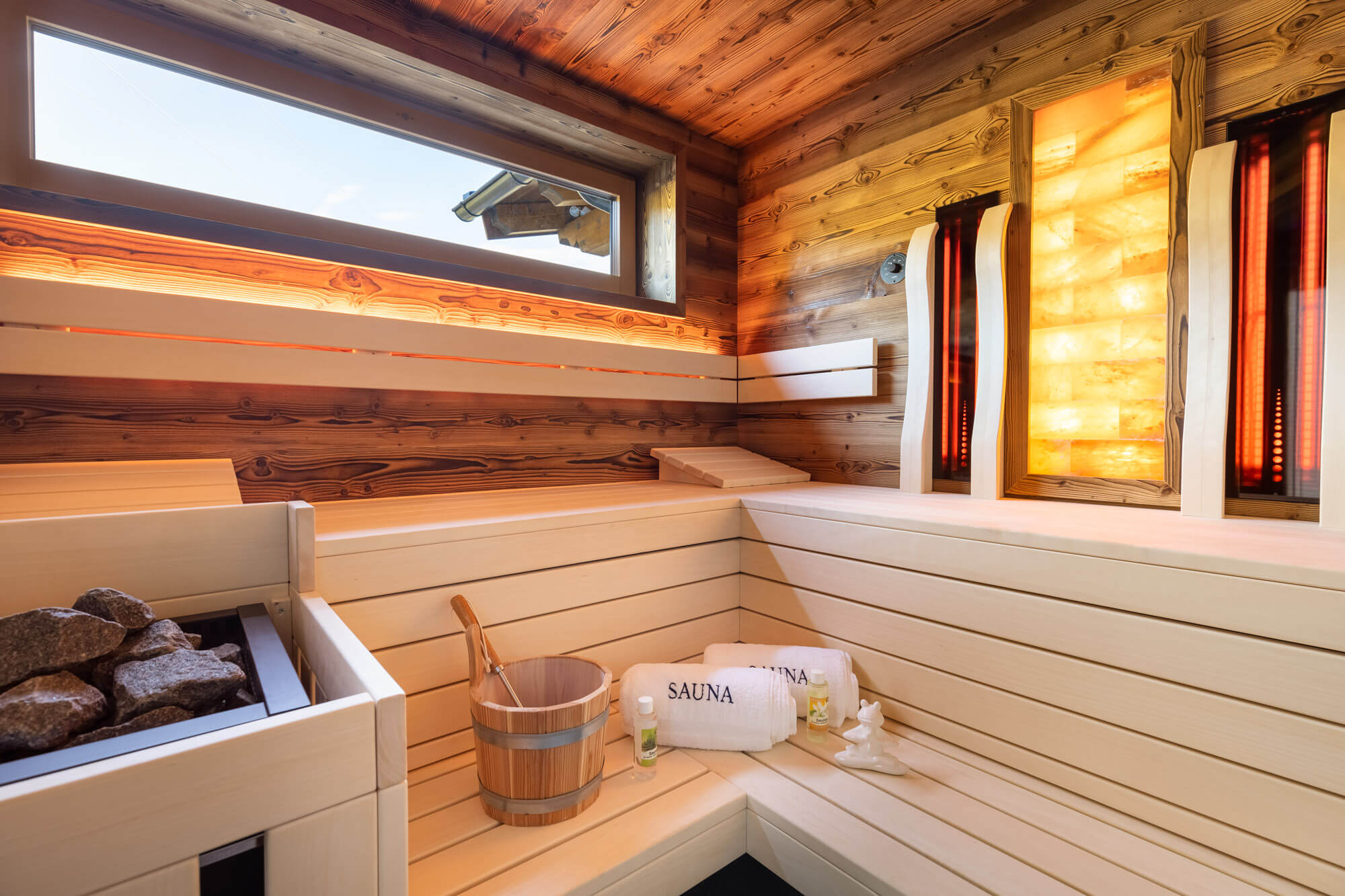 Nach dem Abenteuer in den Bergen erwartet sie ein gemütliches, Hüttenfeeling de luxe mit eigenem Wellnessbereich.